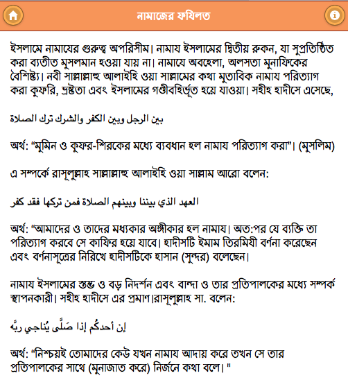 সহজেই নামাজ শিক্ষার সব কিছু শিখে নিন এই অ্যাপ থেকে। নামাযের যেসব জরুরী ব্যাপার জানতে পারবেন; সেগুলো হচ্ছেঃ