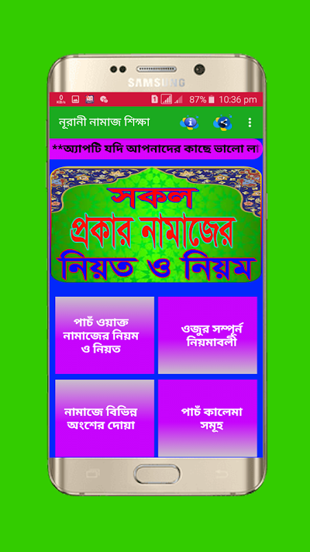 আমাদের আজকের আয়োজন নূরানী নামাজ শিক্ষা। আপনারা এই অ্যাপটির মাধ্যমে সম্পূর্ন নামাজ শিক্ষা লাভ করতে পারবেন। ইবাদতের মধ্যে সবচেয়ে গুরুত্বপূর্ণ ইবাদত হচ্ছে নামাজ।