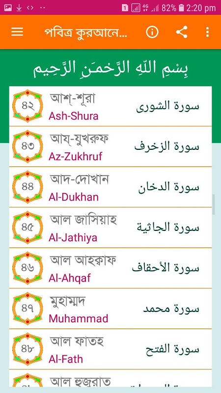 ⇒১১৪ টি সূরা বাংলা অর্থসহ