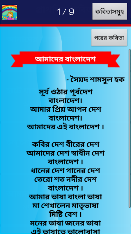 অ্যাপটিতে ১ম-৫ম শ্রেণির সবগুলো কবিতা আছে।