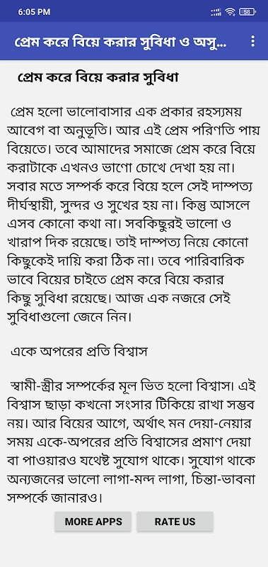তাই আমরা এই এপস এর মাধ্যমে আপনাদের সাথে আলোচনা করার চেষ্টা করবো প্রেম করে বিয়ে করার সুবিধা এবং অসুবিধা নিয়ে, আশাকরি আপনাদের সকলের উপকারে আসবে ।