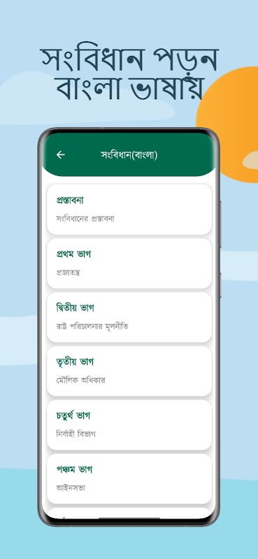 ऐप में सभी संशोधनों सहित बांग्लादेश संविधान का पूरा पाठ शामिल है, जो यह सुनिश्चित करता है कि उपयोगकर्ताओं के पास अपनी उंगलियों पर एक पूर्ण और अद्यतित संसाधन है।