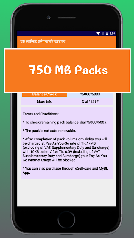 यह ऐप सभी मोबाइल ऑपरेटरों से बांग्ला लिंक है और वे आसानी से कोई भी इंटरनेट पैकेज खरीद सकते हैं और शेष राशि की जांच भी कर सकते हैं।