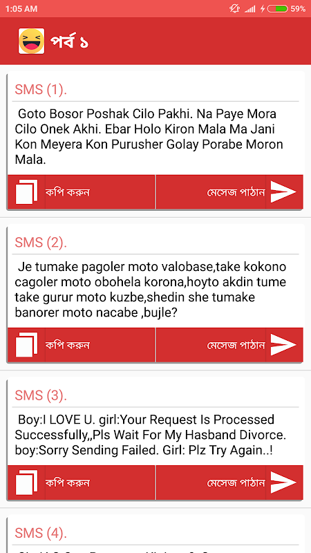 ১০ টি ক্যাটেগরিতে বাংলা ফানি এর এসএমএস ( Bangla Funny SMS ) নিয়ে এই অ্যাপ।