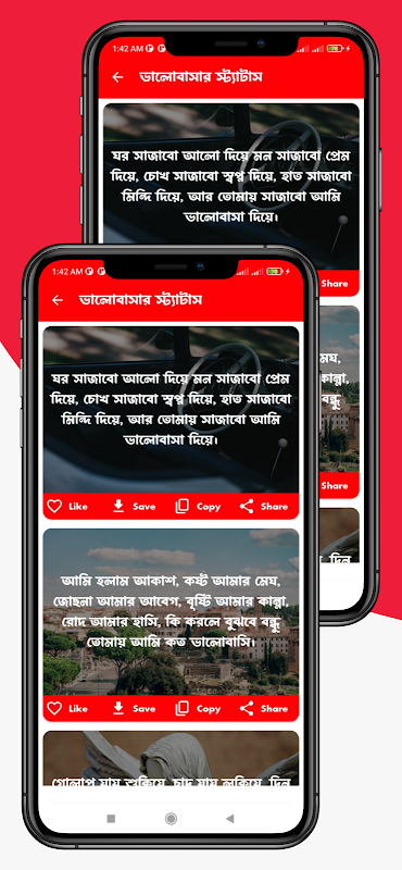 আপনি কি বাংলা স্ট্যাটাস ক্যাপশন খুজতেছেন? যদি উত্তর হ্যাঁ হয় তাহলে আপনি সঠিক জায়গায় এসেছেন। কারণ এই এপসটিতে আপনারা বিভিন্ন ধরনের স্ট্যাটাস পেয়ে যাবেন। এই status বা ক্যাপশন গুলি ব্যবহার করে আপনি আপনার টাইমলাইনকে করতে পারেন আকর্শনীয় ও সবার থেকে আলাদা। এখানে আপনি যে সকল status পাবেন তা হলো: