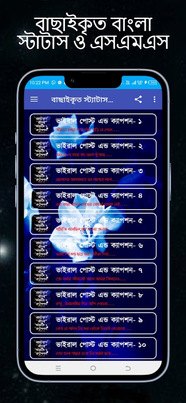 বাছাইকৃত বাংলা স্ট্যাটাস ও ক্যাপশন এপটি সকল ধ রনের স্টাটাস দেওয়া হয়েছে