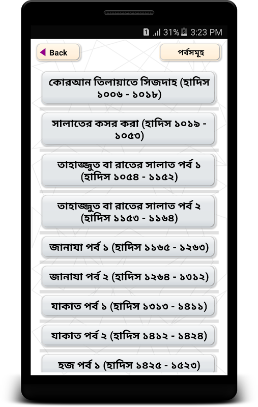 বিদ্রঃ এই অ্যাপ এ বুখারী শরীফ pdf ব্যবহার করা হয়নি। এটি সম্পূর্ণ টেক্সট ফরমেটে এবং অফলাইনে ব্যবহার যোগ্য একটি অ্যাপ।