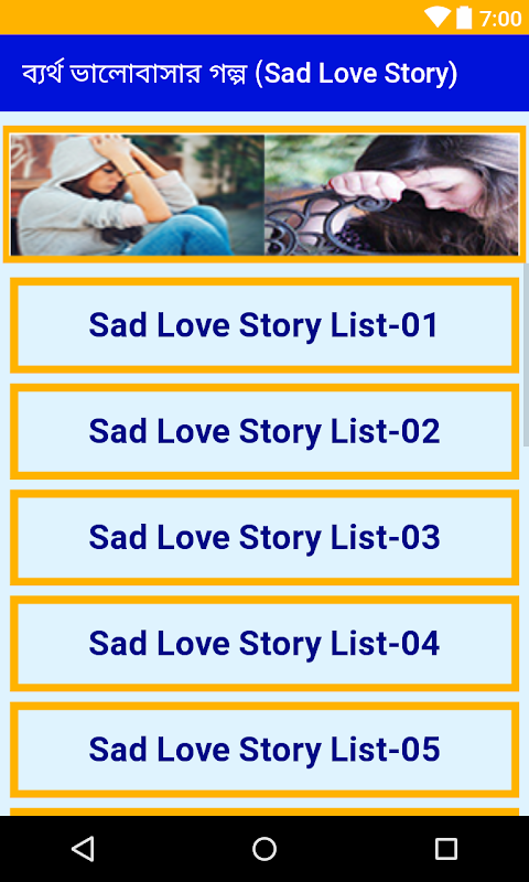 Love always does not bring joys and happiness but sometimes it makes our life full of dark and sorrows. This app included and collection of sad love history that might make you cry. Here all the love history for the broken heart.