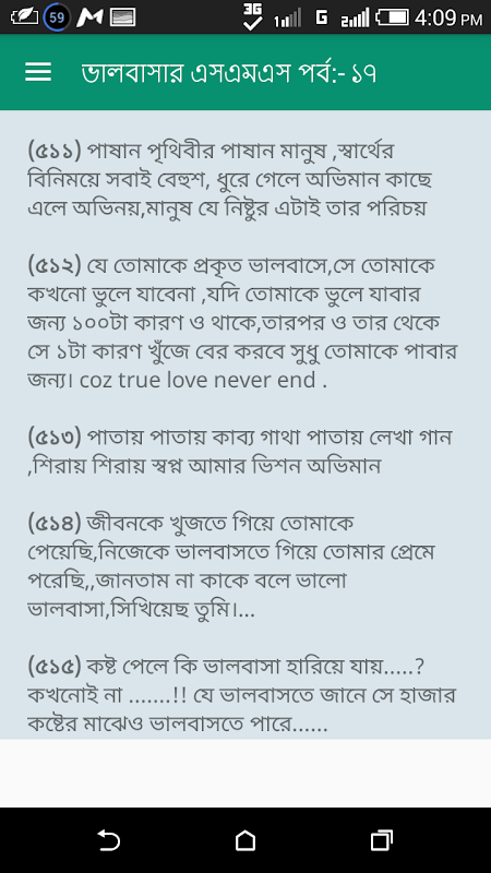 আজ থেকে আর ভালবাসার এসএমএস খুঁজতে হবে না।অ্যাপটিতে সংগ্রহকৃত এসএমএস গূলো পাঠাতে পারবেন আপনার ভালবাসার মানূষটিকে ।
