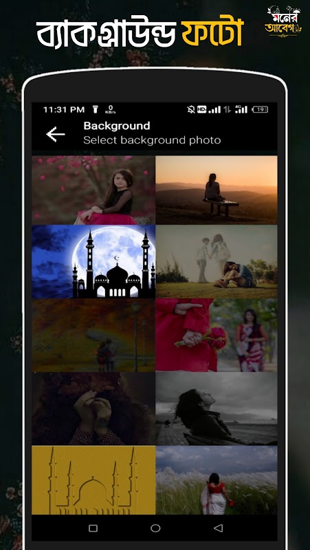 माइंड इमोशंस एबेग ऐप में कई बैकग्राउंड और इमेज के साथ कई स्टेटस बांग्ला एसएमएस कैप्शन टेम्प्लेट हैं।