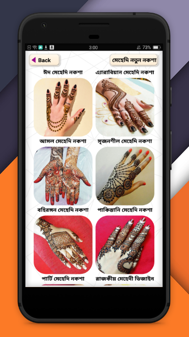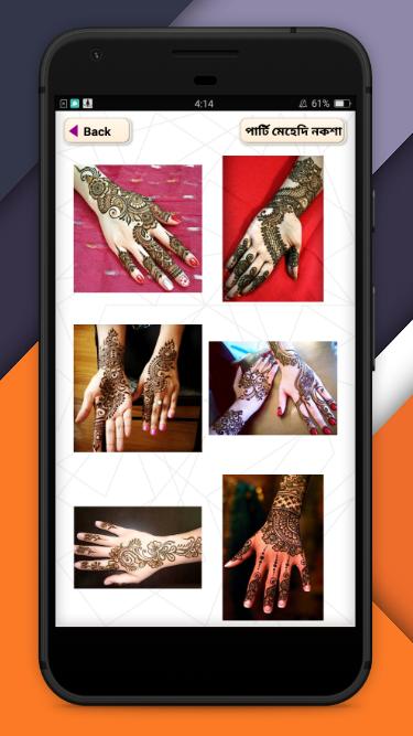নতুন মেহেদি ডিজাইন এবং সর্বশেষ মেহেদি সংগ্রহ 2020 আমাদের অ্যাপে অন্তর্ভুক্ত। আপনি যদি নতুন মেহেদি নকশা বা স্টাইলিশ মেহেদি ডিজাইন চান তবে আমাদের মেহেদি অ্যাপ্লিকেশনটি আপনার জন্য সঠিক অ্যাপ্লিকেশন। মেহেদী ডিজাইন বইয়ের ধাপে ধাপে নকশা প্রক্রিয়ার ধাপ নেই তবে আমাদের মেহেদী ডিজাইন এপিতে আপনি ডিজাইনার মেহেদী ফটোগুলি ধাপে ধাপে পাবেন যাতে আপনি শিখতে পারেন এবং নিজের মেহেদি আর্ট করতে পারেন এবং সন্তুষ্ট বোধ করেন।