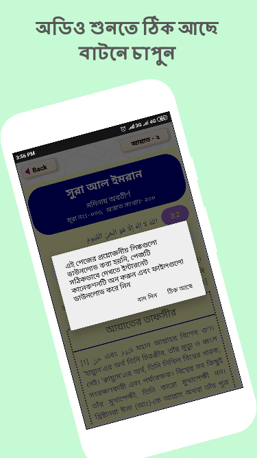 In this “সূরা আল ইমরান তাফসীর ~ Tafsirul quran” app you will find surah al imran audio, surah al imran bangla ucharan, surah al imran bangla anubad and as well as surah al imran tafseer in bangla. So you can download this app without any hesitations.