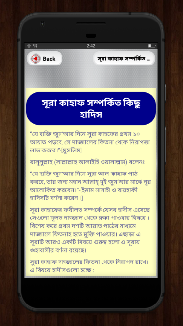 इस ऐप में, आपको सुरा काहफ के साथ बंगला अनुवाद प्रस्तुत किया जाता है जो आपको अपनी भाषा में सुरा का अर्थ समझने की अनुमति देगा।