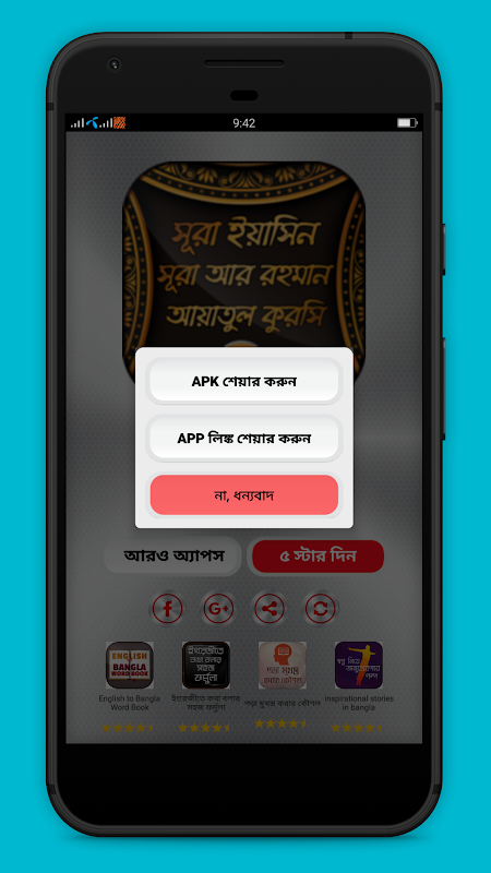 सूरह यासीन-सूरह आर रहमान- अयतुल कुर्सी पवित्र कुरान में सबसे शक्तिशाली सूरह और अयत हैं। यही कारण है कि बहुत से बांग्लादेशी मुस्लिम यासिन एमपी 3 ऑडियो ऑफलाइन संस्करण surah करना चाहता है। हमारा ऐप "सूरह यासीन-सूरह आर रहमान-अयतुल कुर्सी" प्रदान करता है, इस ऐप में बंगाला, अयतुल कुर्सी एमपी 3 के साथ सूरह आर रहमान एमपी 3 भी शामिल है। कभी-कभी कई लोग अयातुल कुर्सी ऑडियो और सूरहा आर रहमान पूर्ण खोजते हैं, यह समस्या नहीं है। किसी ने सूर्या अयातुल कुर्सी या अयतुल कुर्सी सूरह की खोज की है जो खतरनाक गलती है। अयतुल कुर्सी सूर्या नहीं है, यह सूरह बकर के अयत (255) है। हमारे प्रोफेसर हजरत मुहम्मद ने देखा कि सूरह यासीन कुरान का दिल है। उन्होंने कहा कि अगर कोई इस जीवन के लिए सूर्या यासीन पढ़ता है और जीवन के बाद और उसकी अनन्त शांति पूरी की जाती है। तो अगर आप एक बार में "सूरह यासीन-सूरह आर रहमान-अयतुल कुर्सी" चाहते हैं। हमारे ऐप डाउनलोड करें।