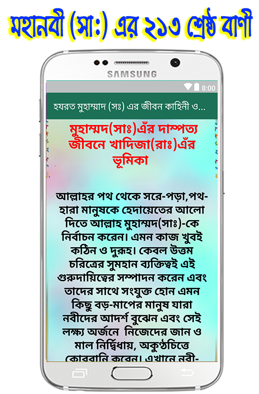 অ্যাপটিতে বিশ্বনবীর জীবনের সকল ঘটনা ধারাবাহিক ভাবে তুলে ধরা হয়েছে ও ২13 টি বাণী