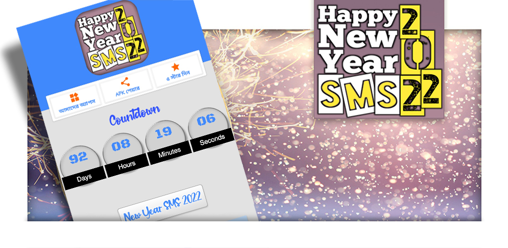 হ্যাপি নিউ ইয়ার 2022 কে সামনে রেখে আমাদের এবারের আয়োজন নিউ ইয়ার এসএমএস নিয়ে হাজির হলাম আপনাদের সামনে। অনেক চমৎকার ভাবে বাছাই করা সব বাংলা ও ইংরেজি নিউ ইয়ার এসএমএস (SMS) নিয়ে তৈরি করা হয়েছে আমাদের এবারের New year sms আয়োজন। এখানে নতুন বছরের এসএমএস এর সুবিশাল কালেকশন পাবেন। আপনার মনের চাওয়া যেমন ঠিক তেমনি একটা অ্যাপ হচ্ছে এই হ্যাপি নিউ ইয়ার 2022, এতে নিউ ইয়ার এসএমএস ছাড়াও আরও পাবেন বাংলা নববর্যের এসএমএস। New year sms 2022 অথবা ইংরেজি নববর্ষের প্রথম দিন বা থার্টিফাস্ট নাইটকে সামনে রেখে চমৎকার সব হেপি নিউ ইয়ার ২০২২ এর শুভেচ্ছা ও নিউ ইয়ার এসএমএস দিয়ে সাজানো হয়েছে আমাদের এইবারের নতুন এই হেপি নিউ ইয়ার এসএমএস ২০২২ অ্যাপটি। হ্যাপি নিউ ইয়ার এর বাংলা এসএমএস গুলো আলাদা ভাবে ভাগ করে দেওয়া হয়েছে যাতে আপনারা সহজে শুভ নববর্ষ এসএমএস শেয়ার করতে পারেন। এই হেপি নিউ ইয়ার ২০২২ থেকে আপনি আপনার মনের মানুষকে চমৎকার সব হ্যাপি নিউ ইয়ার বাংলা মেসেজ পাঠাতে পারবেন। হ্যাপি নিউ ইয়ার 2022 sms মানে আরেকটি নতুন বছরের আগমন।