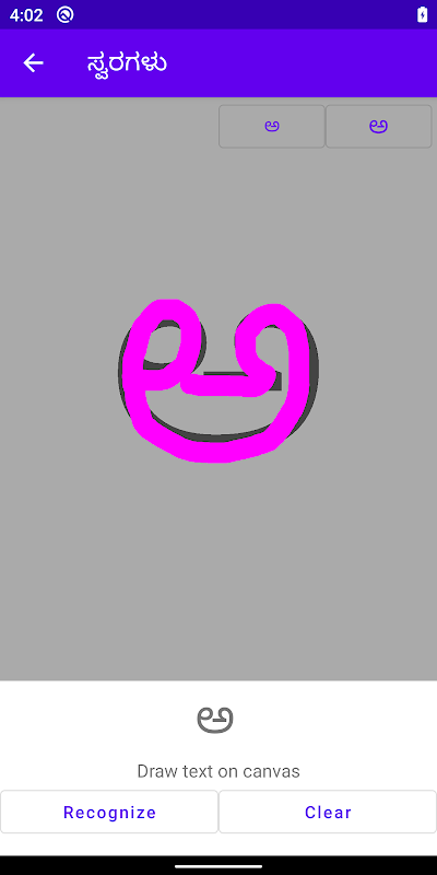 ಬರವಣಿಗೆ कन्नड़ ऐप स्क्रीन पर उपयोगकर्ता द्वारा खींचे जाने वाले स्ट्रोक के साथ काम करता है।