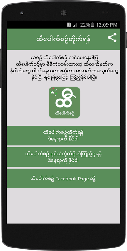 ထီေပါက္စဥ္မွာ မိမိကံစစမ္းထားတ့ဲ ထီလက္မွတ္က နံပါတ္ေတြ ပါ၀င္ေနသလားဆိုတာ ဒီေဆာ့၀ဲကေန ရင္ခုန္စြာျဖင့္ ၾကည့္နိုင္ပါျပီ။ ထီဖြင့္တ့ဲေန ့မွာ ထီေပါက္စဥ္ကို တိုက္ရိုတ္ၾကည့္နိုင္မယ့္ ရုပ္သံလိုင္းကိုလည္း ထည့္သြင္းေပးထားတာေၾကာင့္ ထီတိုက္ခ်င္သူေတြအတြက္ အဆင္ေျပပါျပီ။