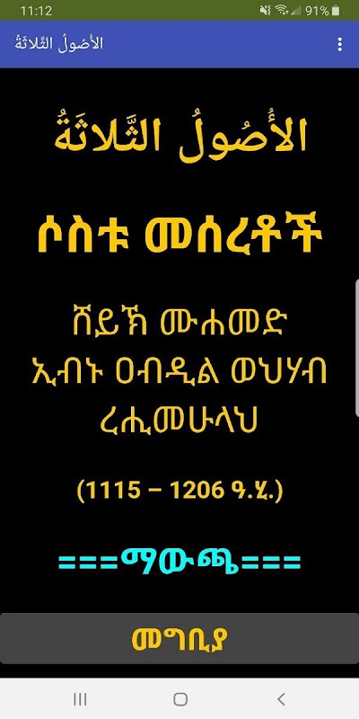 الولُ الثَّلاأُصَُةُ ሶስቱ ሶስቱ ሸይኽ ዐብዲል ዐብዲል ሙሐመድ ዐብዲል ረሒመሁላህ