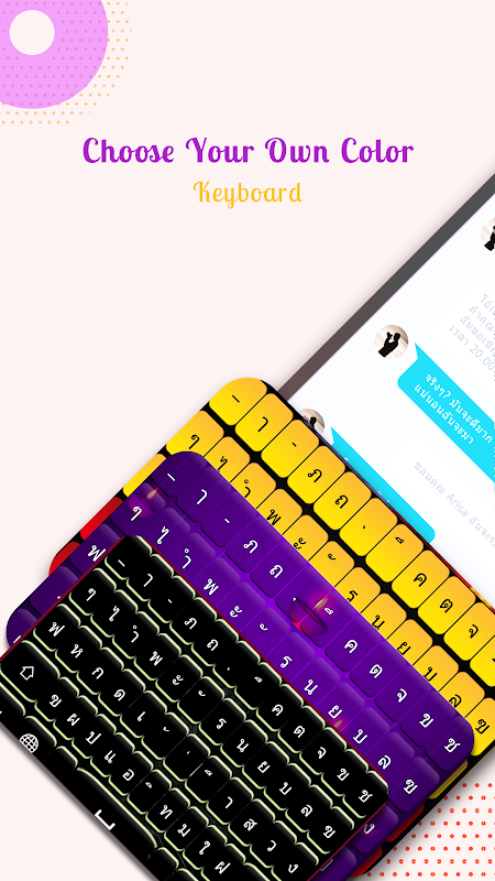 This app is designed with a huge amount of stunning & eye-catching colors & keyboard theme and font. Choose the color or theme that you most like & write the Thai alphabets.