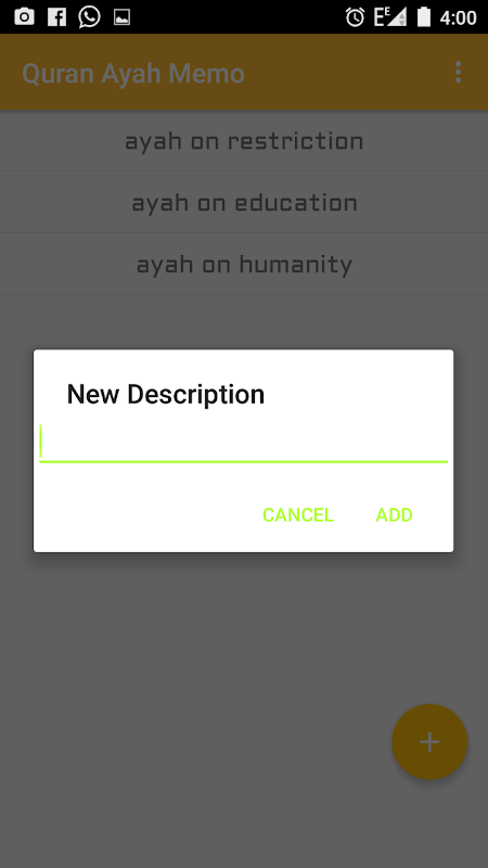 This app help you to categorize and list your specific Ayahs from Quran. You can create Subjects and save ayahs under these subjects. you can also read ayah's instantly by knowing Sura name and also have the support of translation in most of the languages.