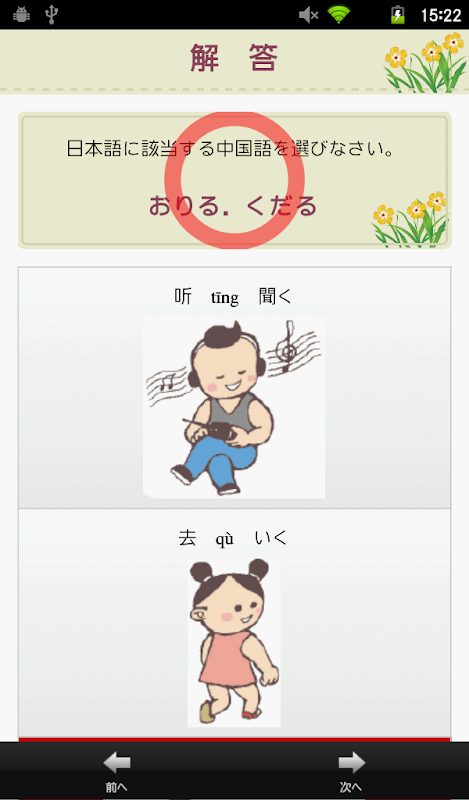 中国語初級教科書『中国語入門 きらきらの童年』の各課「たんご8兄弟」に掲載される単語をイラストとネイティブ・スピーカ―の発音で習得できるアプリケーションです。