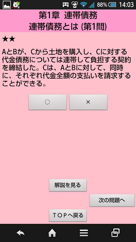 また、問題のすべての解説を読むと、テキストを読むのと同じになるように体系建てて、丁寧な解説を加えています。これによりいきなり過去問に挑戦できるようにしてあります。このアプリを解くだけで、合格最低点を効率的に上回るように設定してあります。