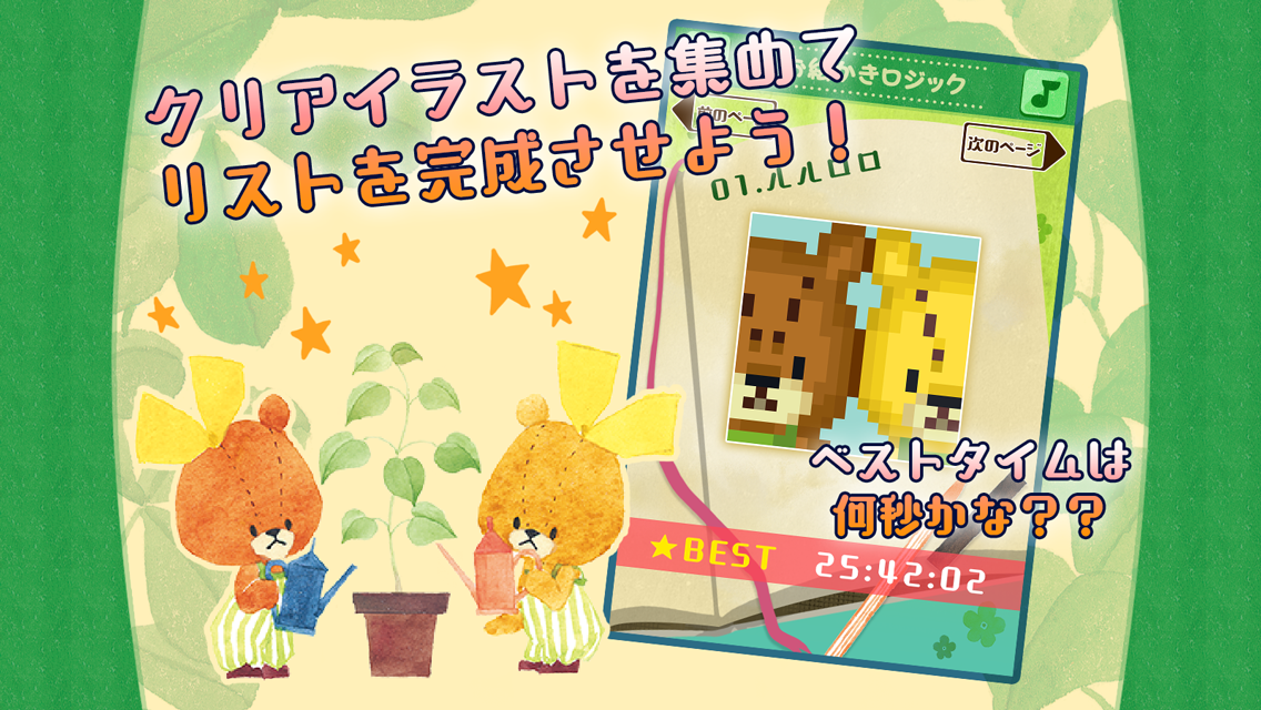 「がんばれ!ルルロロ」から 定番のパズルゲーム『お絵かきロジック』が登場! 20×20マスの「見やすさ」と「やり応え」のちょうど良いサイズ 無料で遊べるよ!