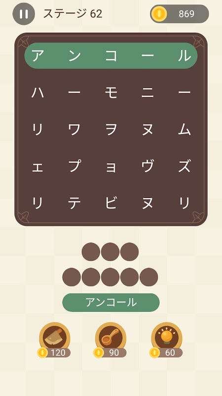 ワードを探したり推測したりするのがお好きなら、クロスワードパズルの大ファンなら、カジュアルで教育的なゲームを探しているのなら、この『かなかな探し』はきっとあなたの二つとない選択になる。数多くの文字の中から目標ワードを探してつなぐ。始まりは簡単だけど、どんどん難しくなって挑戦的である。きっとあなたの大好物になるよ!