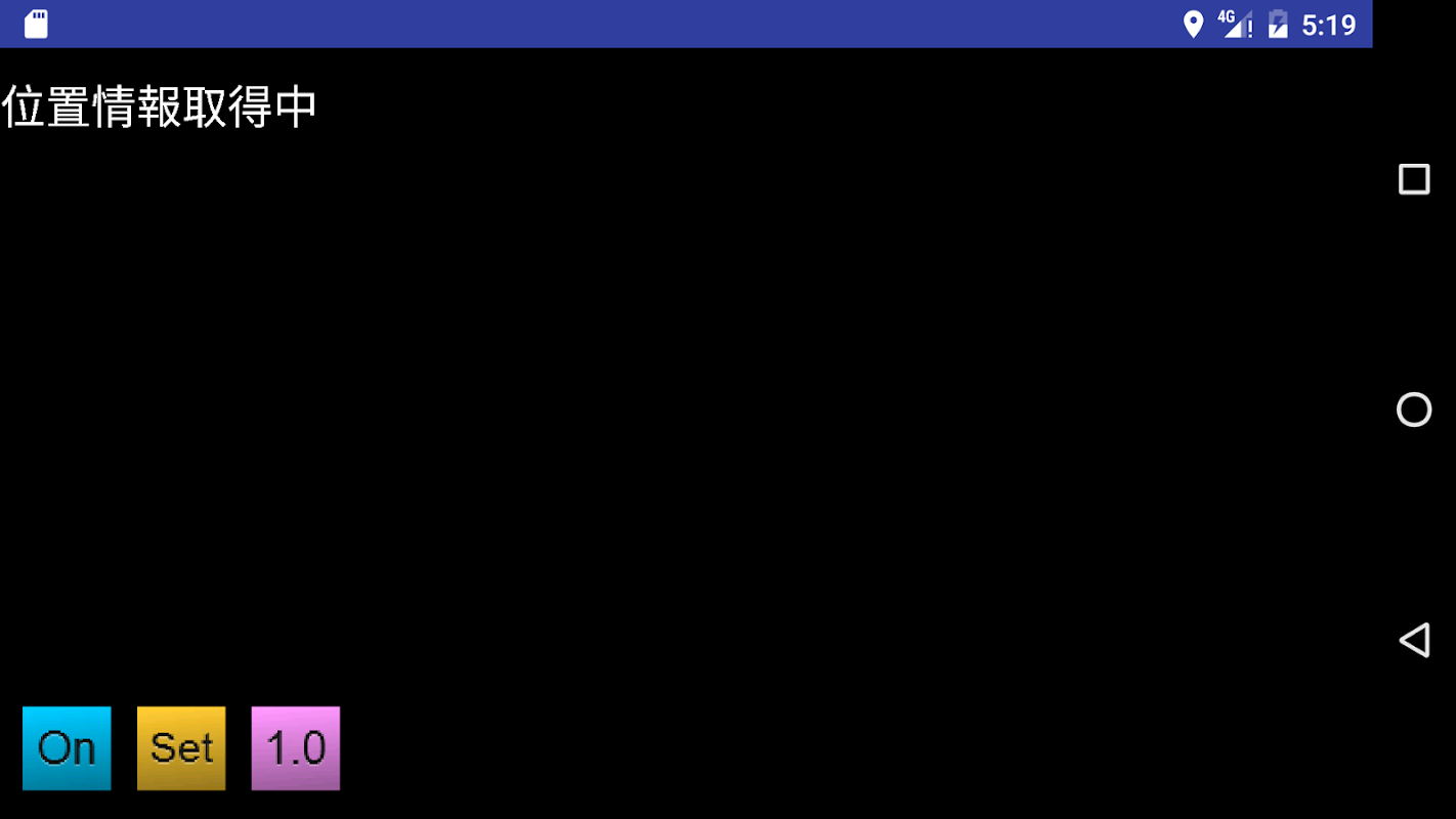 下部ボタンの[ON][OFF]を押して切り替えることによって、位置情報の有効・無効を操作できます。Android 自体の現在位置の取得を操作している訳ではないので、注意してください。