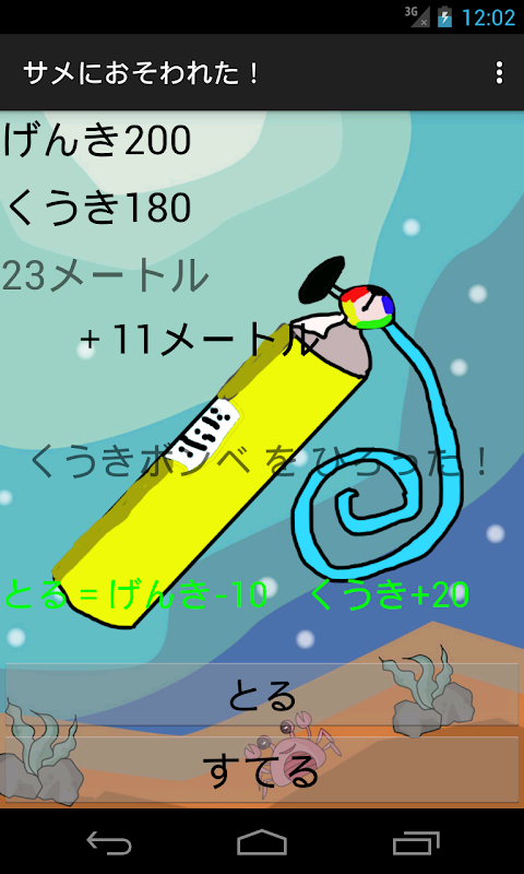 「魚」と「くうきボンベ」をうまく使って回復しよう。