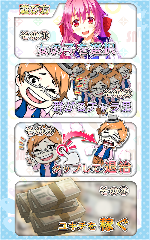 2.つられたチャラ男をタップで退治。ユキチを稼げ!