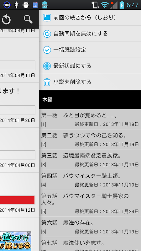なおりはWEBサイト「小説家になろう」「小説家を読もう」をオフラインでも読める非公式快適オフラインリーダーです。