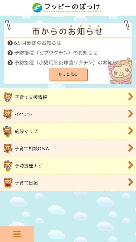 『ふくろい子育て応援ナビ(フッピーのぽっけ)』は、袋井市の子育て世代を応援するために必要な情報をいつでもどこでも、手軽に知ることができるアプリです。