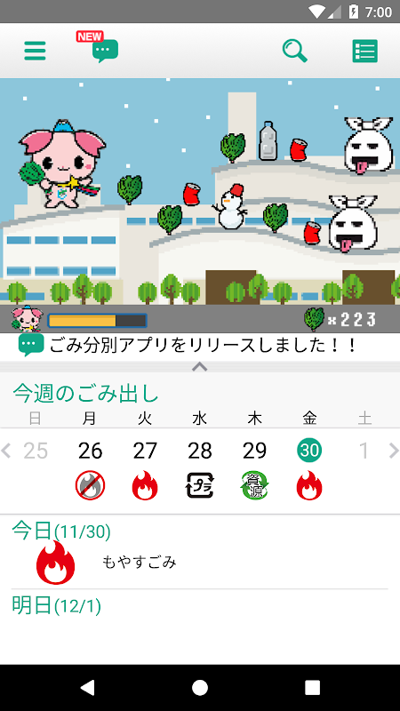 हमने एक आवेदन जारी किया है जो आपको परिचित स्मार्टफ़ोन का उपयोग करके कचरा संग्रहण तिथि, कचरा निपटाने का तरीका, वितरण पर नोट्स, कचरा अलगाव शब्दकोश, अक्सर पूछे जाने वाले प्रश्न इत्यादि जैसे विभिन्न प्रकार की कचरा जानकारी आसानी से जांचने की अनुमति देता है।
