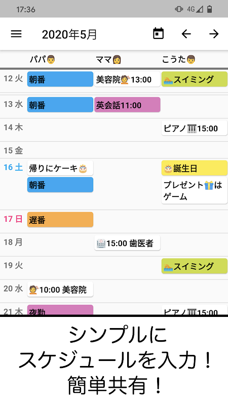 परिवार, दोस्तों और समूहों के साथ! आप अपना कैलेंडर आसानी से साझा कर सकते हैं. पुश सूचनाओं और इतिहास सुविधाओं के साथ कोई भी बदलाव न चूकें। इसके अलावा, एक बार जब आप शेड्यूल दर्ज कर लेते हैं, तो आप इसे इतिहास से आसानी से और जल्दी से दर्ज कर सकते हैं!