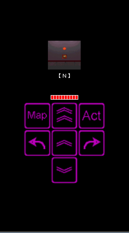 ・ゲームボタンはそれぞれ「前に走る」「前に歩く」「後ずさる」「右を向く」「左を向く」「マップを見る」「アクション」の7個あります。