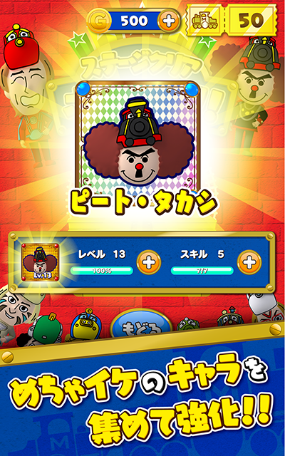 ミッションをクリアして、マップを進もう。マップを進めば、めちゃイケのキャラカードをゲット!キャラを集めて強化しよう!