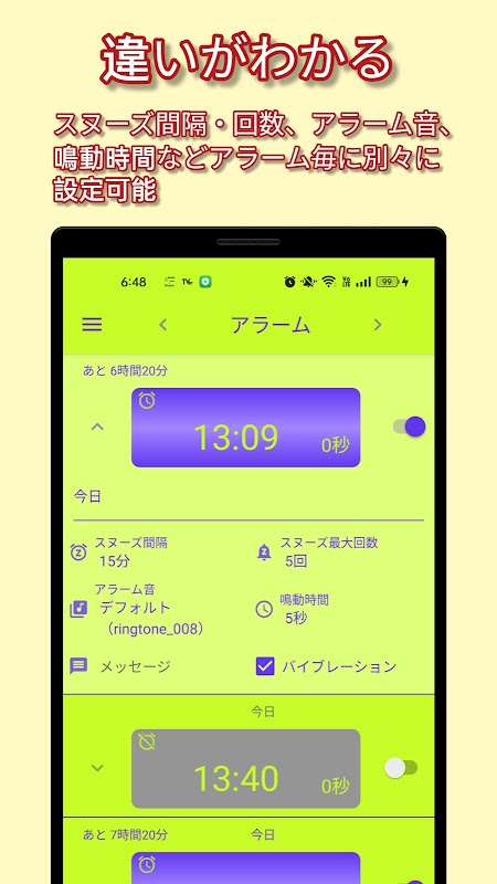 आप एक साधारण ऑपरेशन के साथ विभिन्न अलार्म का आनंद ले सकते हैं।