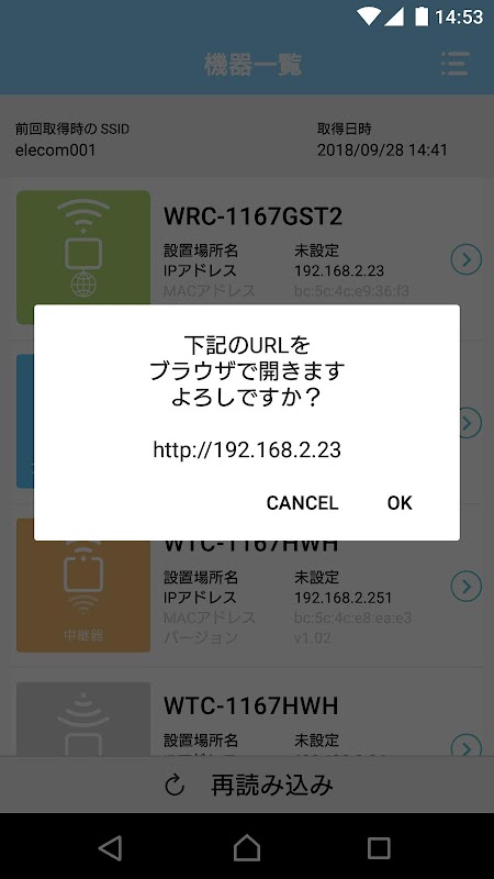 ・नेटवर्क में ELECOM वायरलेस LAN राउटर और रिपीटर्स खोजें।