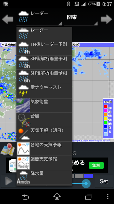 यह ऐप जापान मौसम विज्ञान एजेंसी से प्राप्त चित्र डेटा को कैश और प्रदर्शित करता है।