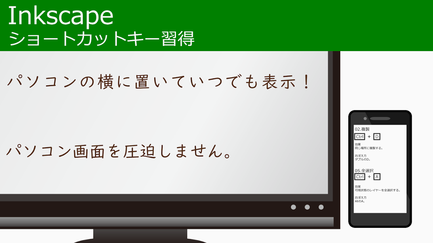 インクスケープショートカットキー習得!PCの横に置いて少しずつ集中して習得しよう! APK जानकारी