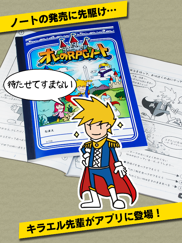 このアプリは株式会社ウィズから発売の遊べる文具「オレのRPGノート」に登場する美しき先輩勇者キラエルが、