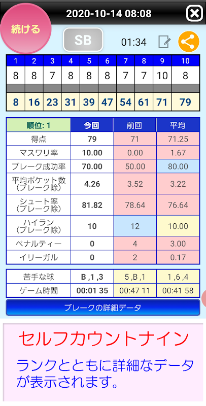 यह बिलियर्ड गेम के सेल्फ-काउंट नौ (सेल्फ काउंट 9) का रिकॉर्ड रखने के लिए एक आवेदन है।