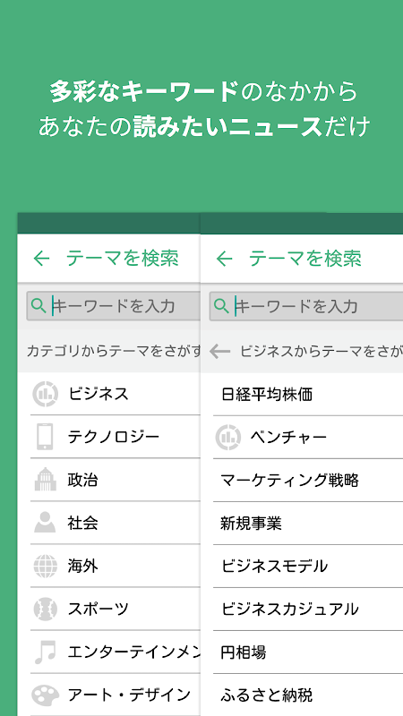 ・多彩なテーマカテゴリの中から自分の好きなニュースが読めます