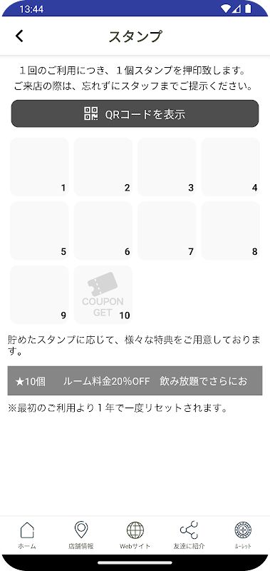 स्टोर पर जाते समय अपना ऐप सदस्यता कार्ड प्रस्तुत करके, आप विज़िट की संख्या, अंक और रैंक के आधार पर छूट प्राप्त कर सकते हैं।