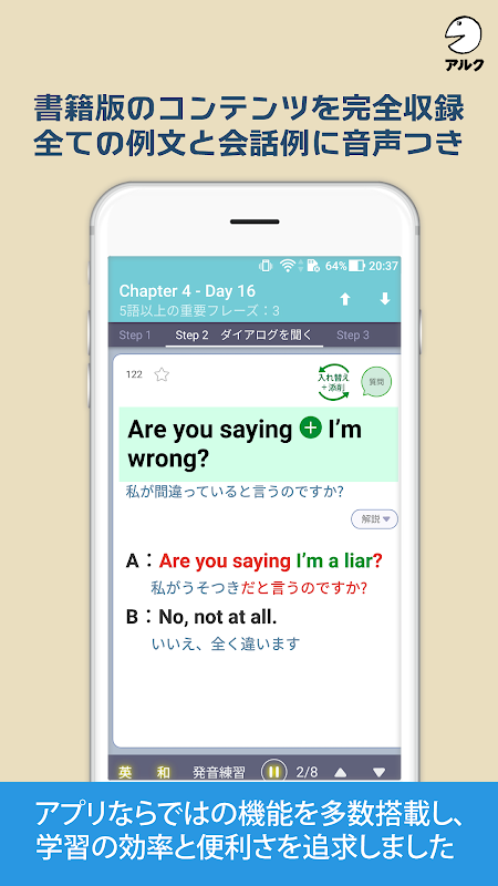 एएलसी की लोकप्रिय पुस्तक किकुटन अंग्रेजी वार्तालाप ऐप संस्करण! दृश्य निर्णय के साथ वास्तविक समय सुधार समारोह + उच्चारण अभ्यास समारोह से लैस!