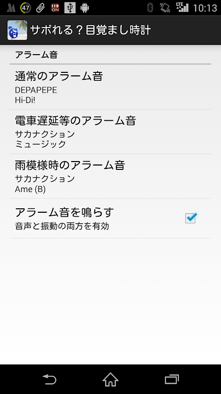 電車の遅延以外にも、天気をチェックし、予報が雨だったら、アラームを鳴らさないようも出来ます。