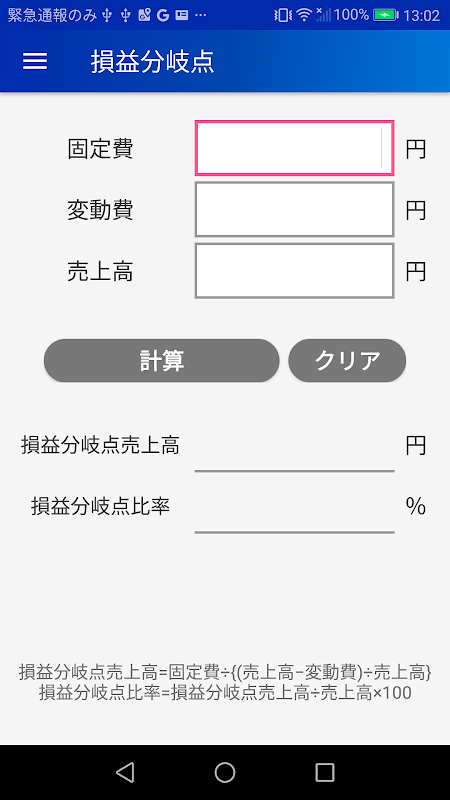 簡単入力!利益や原価率や損益分岐点を自動計算! 売上や原価を入力するだけで、知りたい数値を自動で計算できます。