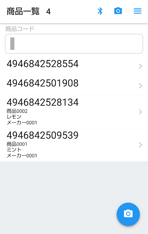 内蔵カメラ使用:ONに設定した場合、カメラのアイコンが有効となり、スマートフォンに内蔵のカメラを使用して商品のバーコードを読み取ることができます。